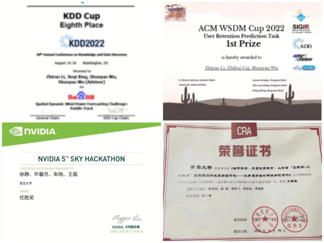 NVIDIA 5TH SKY HACKATHON,优胜奖1项;