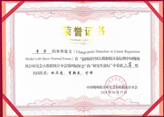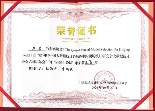 伟德官网师生参加第四届中国大数据统计论坛暨中国现场统计研究会大数据统计分会第四届年会并获优秀论文奖