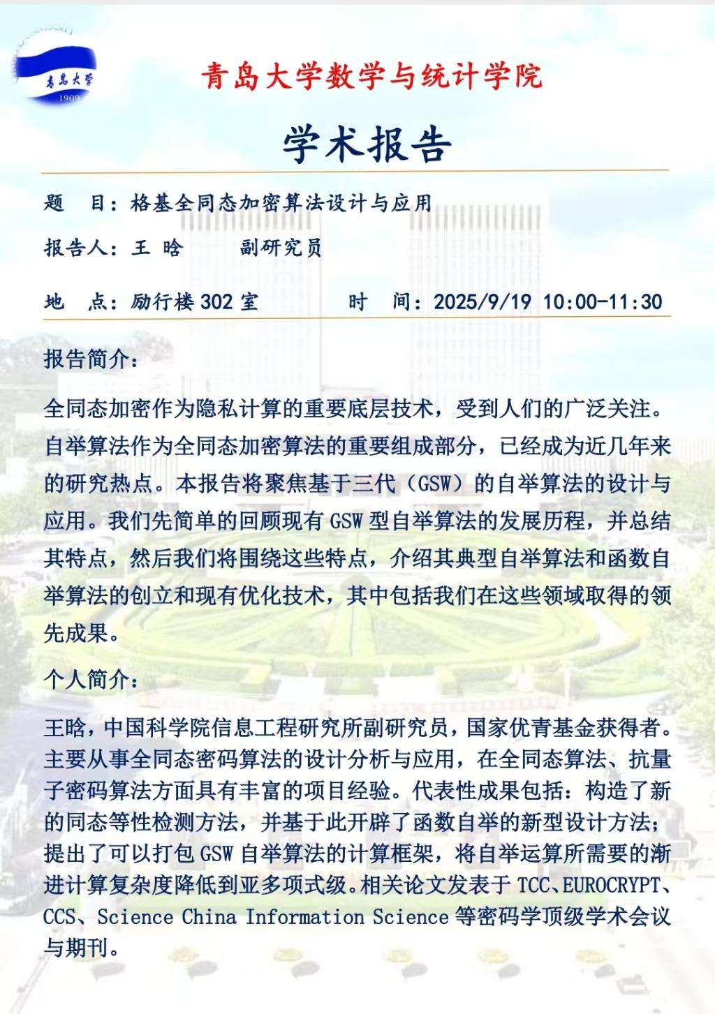 上一篇:“2025魅丽数学系列会议——海洋科学中的关键数学问题专题研讨会”成功召开