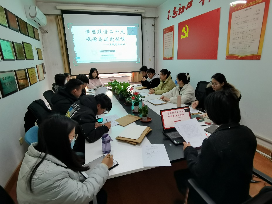 11月30日,为全面学习贯彻党的二十大精神,伟德官网本科生党支部在励行楼会议室开展“学思践悟二十大 砥励奋进新征程”主题党日活动,支部所有党员参加,因疫情未返校的党员线上参会。