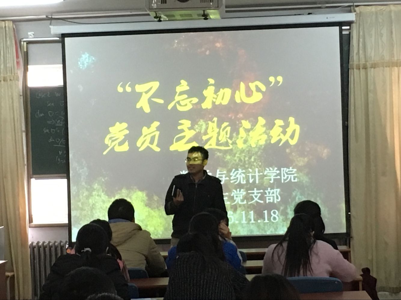 11月18日中午,伟德国际1946官方网在励行楼三楼会议室举行“不忘初心”学生党员主题活动,全体学生党员以及部分入党积极分子参加活动,由辅导员王珺鹏主持。