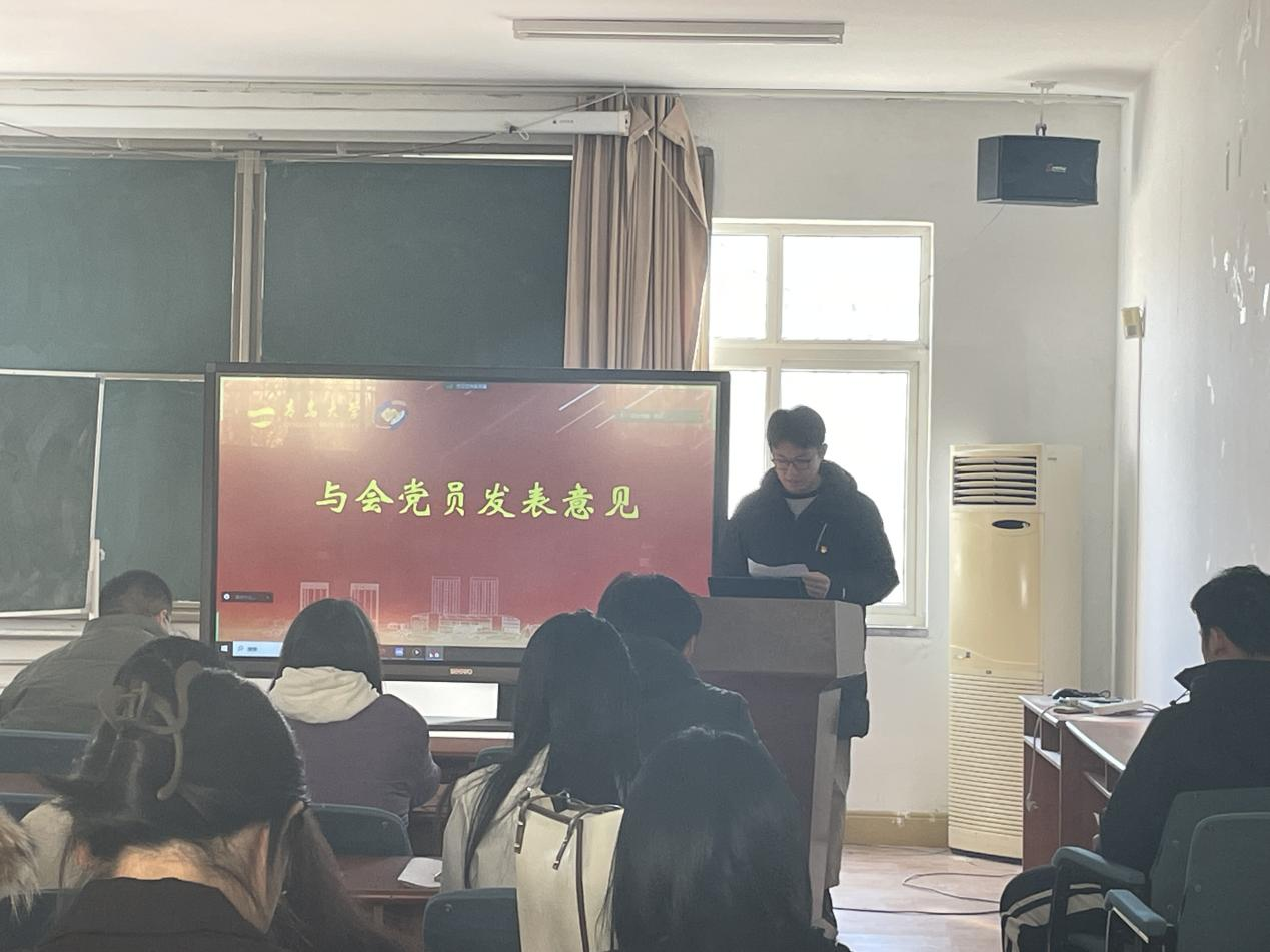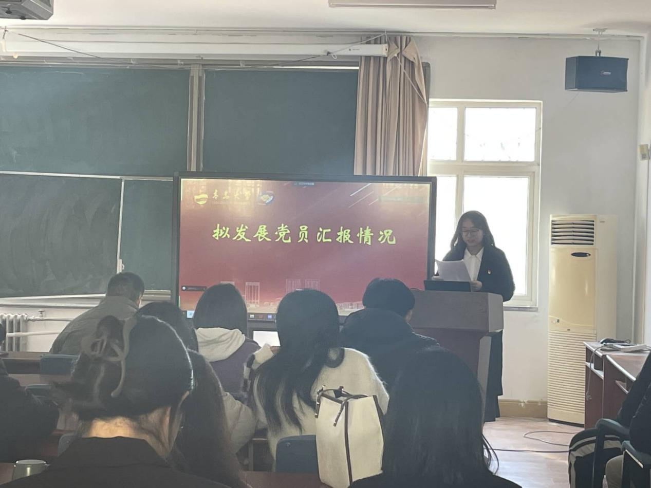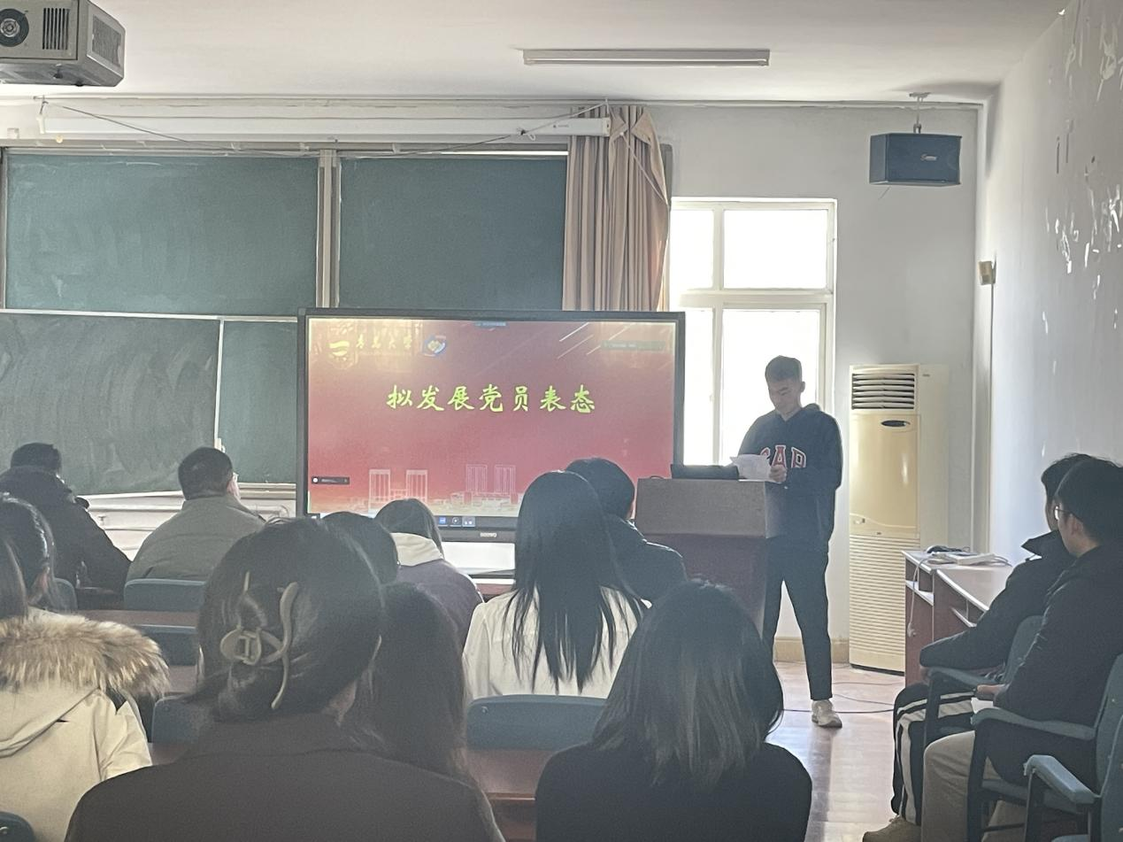 会议由本科生党支部书记朱雨彤同志主持。支部全体党员和拟发展预备党员参加。大会根据《中国共产党章程》和《中国共产党发展党员工作细则》要求,讨论吸收殷博文等22名党员发展对象成为中国共产党预备党员的事宜。