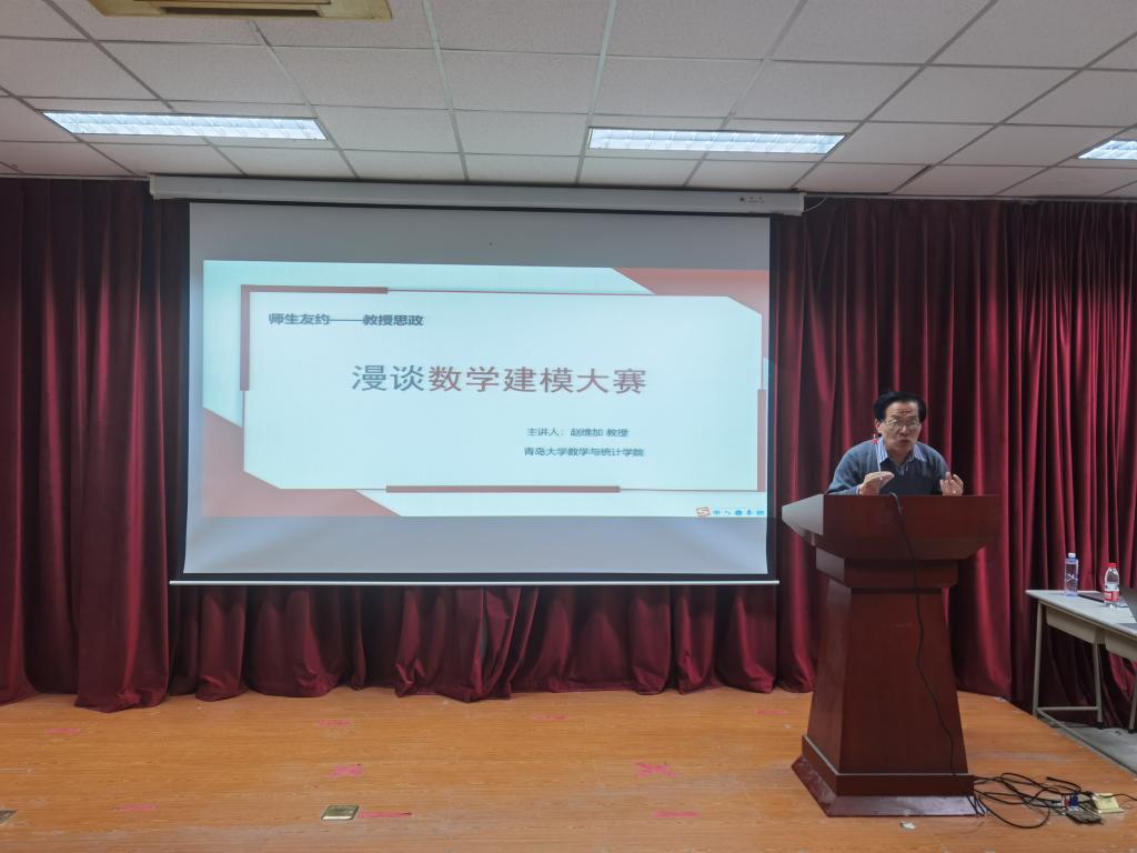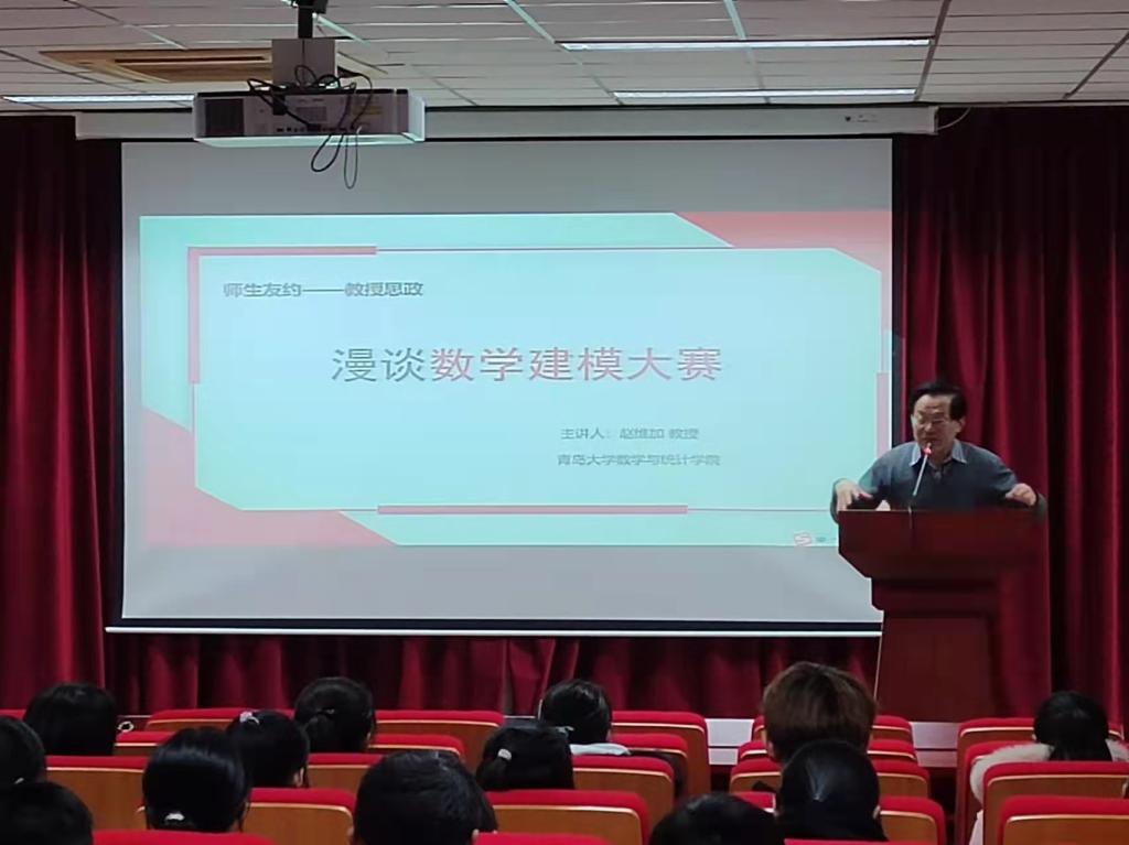 2021年12月21日15:30,“漫谈数学建模大赛”教授思政课在金家岭校区图文中心三楼报告厅举行。