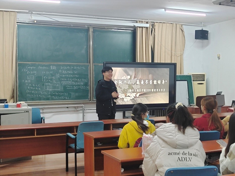 10月28日周四晚七点,伟德国际1946官方网举行“金秋十月,最是书香能致远”读书分享会,本次读书分享会由2020级统计二班主办,2020级全体班级参加。本次分享会,由统计二班杨伟硕主持,共有十三位同学依次进行了分享,为我们展示了文字的美丽与魅力。