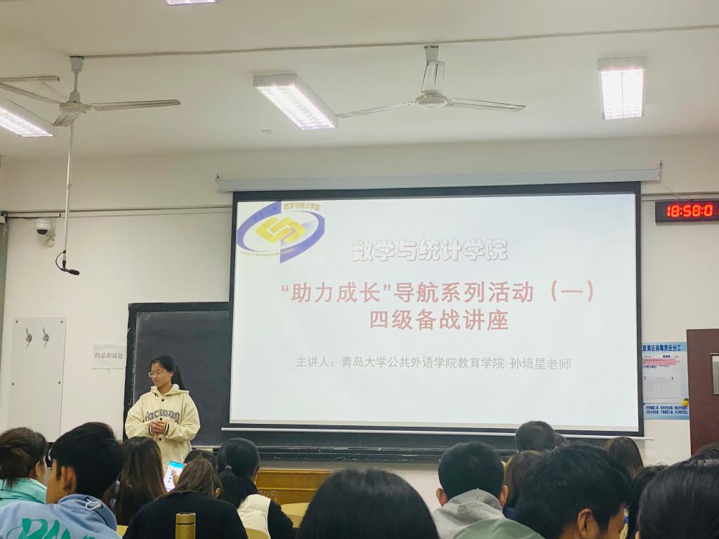 11月15日晚,为帮助同学们科学有效备战四六级考试,伟德国际1946官方网在浮山校区博知楼306举办了“助力成长”导航系列活动(一)四级备战讲座,本次讲座邀请到了伟德国际1946官方网公共外语教育学院英语老师孙培星老师。