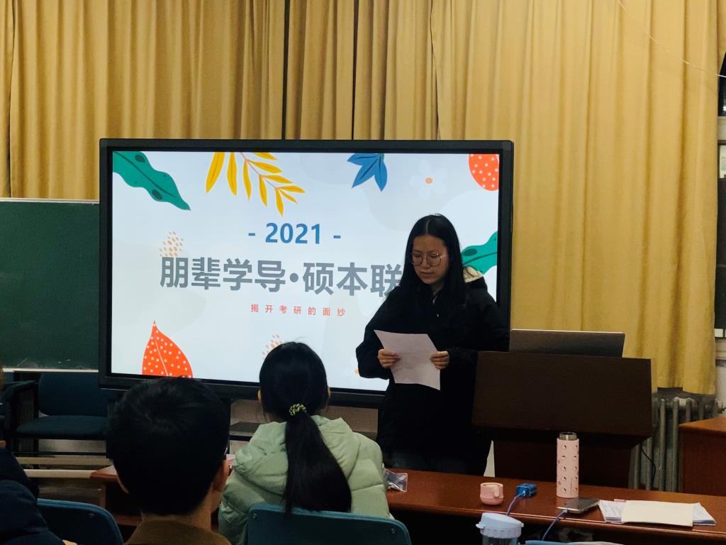 2021年12月8日晚,伟德国际1946官方网“朋辈学导•硕本联谊”活动在伟德国际1946官方网浮山校区励行楼302成功举办。研究生代表刘佳伟、刘庆春、姜慧文、王敬伟、何哲、王志超,崔曼若出席此次活动,2020级各班部分同学参与。