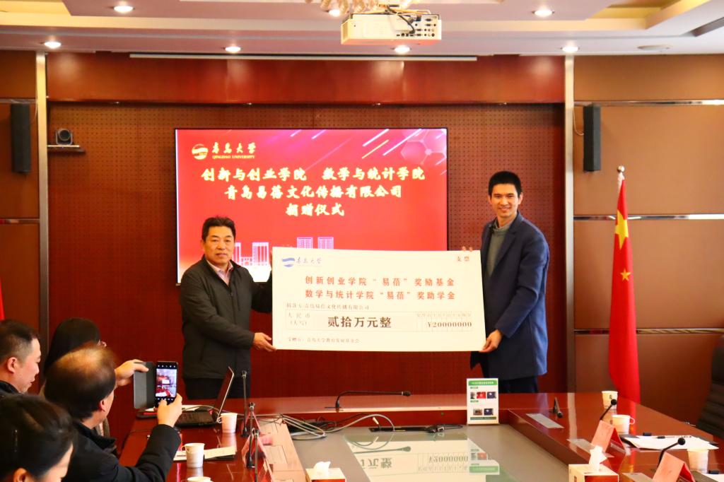 此次青岛易蓓文化传播有限公司无偿向伟德国际1946官方网捐赠人民币20万元,其中10万元设立“伟德国际1946官方网‘易蓓’奖助学金”,10万元设立“创新创业学院‘易蓓’奖励基金”。