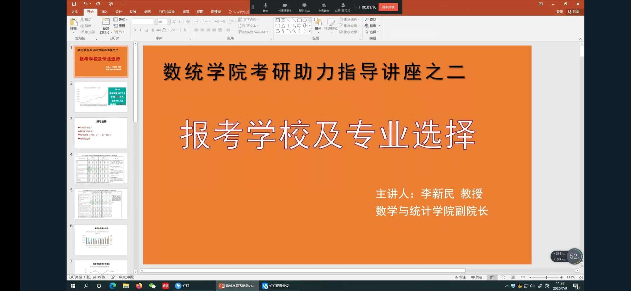 为帮助同学们备战2020年考研,7月9日,伟德国际1946官方网通过钉钉线上直播的方式召开主题为“考研学校及专业选择”考研助力系列讲座。讲座由学院副院长李新民主讲,2017级考研同学参加。