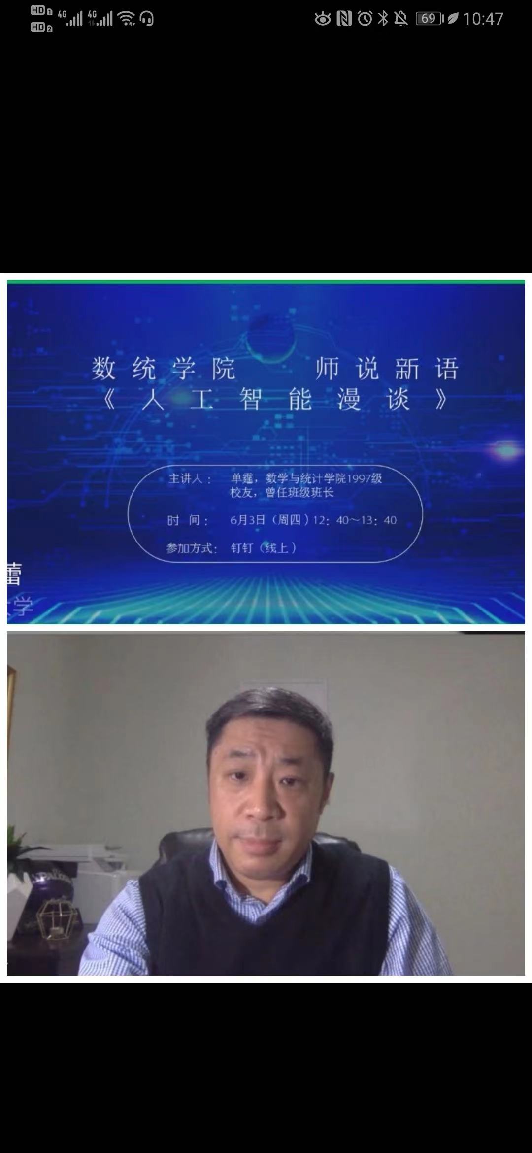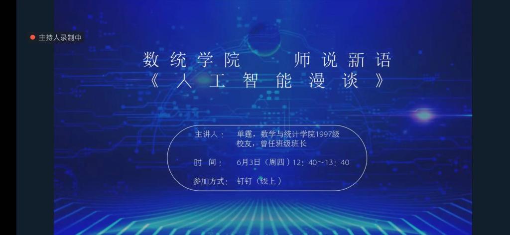 6月3日中午,伟德国际1946官方网通过钉钉会议方式举办“师说新语”系列之“人工智能漫谈”讲座。学院1997级优秀校友单霆主讲,伟德国际1946官方网张芳、刘显著等老师与同学们约一百余人参加,讲座由学院党委副书记张雪蕾主持。