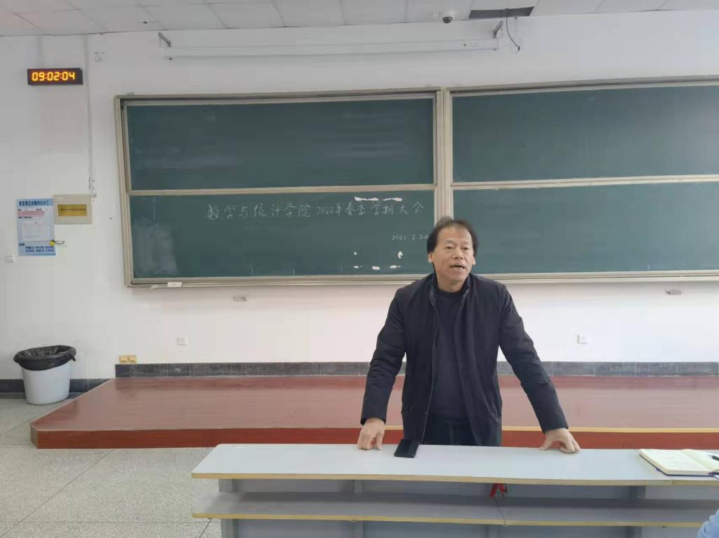 高红伟简要回顾了学院2021年事业发展情况。2021年在学院班子带领下,全院教师努力拼搏,学院终于成功获批教育部数学学科一级博士点,实现了学院全体教师多年夙愿,取得学院事业发展重大进步。展望2022年工作,高红伟指出,现要积极投身学校“冲一流”建设和“学科+”建设中去,在立足自身、做强自己的同时,抢抓发展机遇,做好与其他学科的交叉融合,更好、更快地适应学校事业发展新要求,并在新的发展背景中寻找自己不可替代的位置和作用。