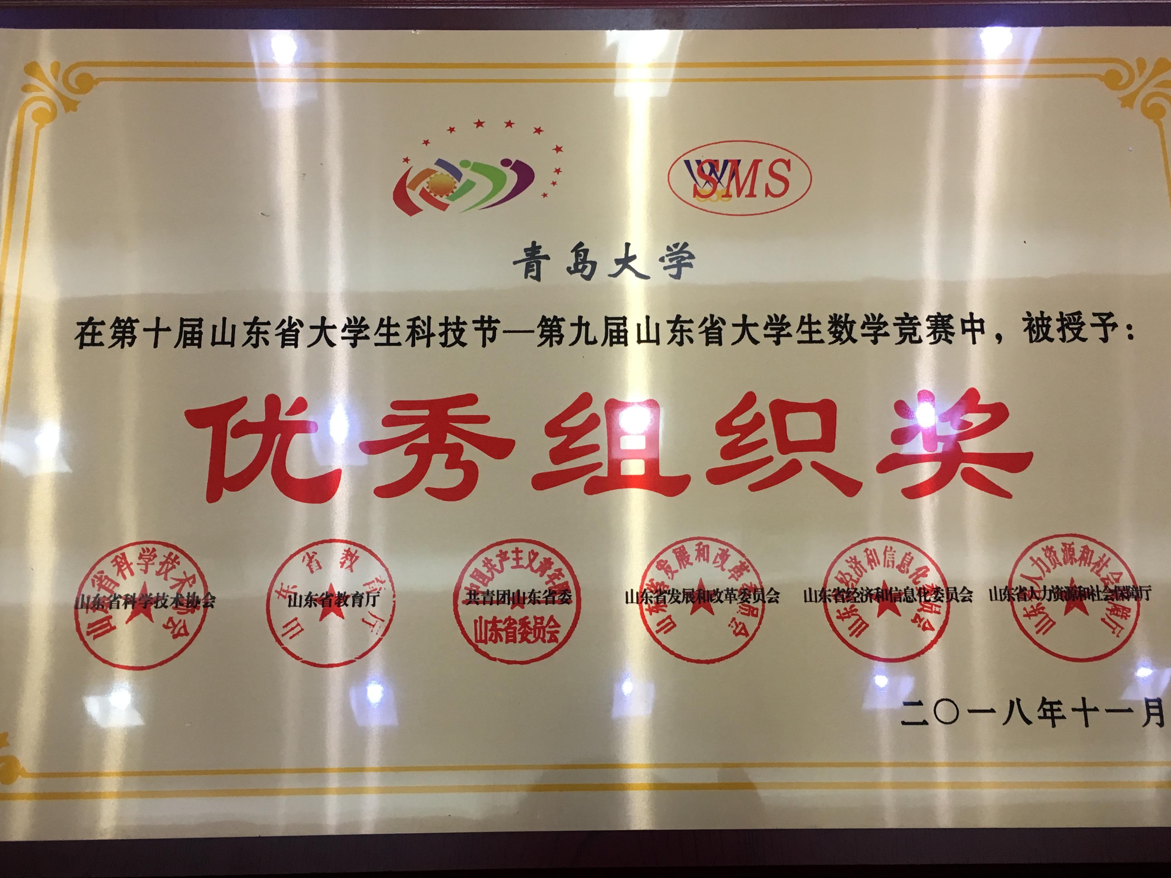 名老师获得山东省优秀指导教师。在全省获奖名单中,除获得优秀组织奖外,我校伟德国际1946官方网纪培胜等老师获得优秀