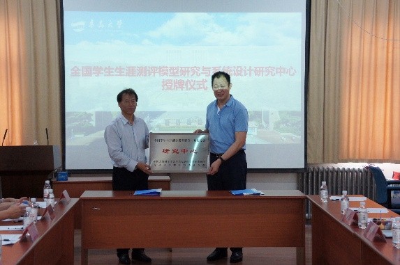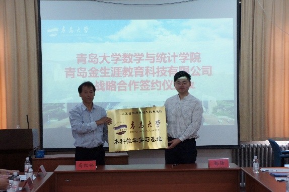 全国学生发展指导专业委员会主任刘崇利代表学会向伟德国际1946官方网授予“全国学生生涯测评模型研究与系统设计研究中心”牌匾,伟德国际1946官方网院长高红伟向青岛金生涯教育科技有限公司总经理郑强授予“山东省应用基础型特色名校伟德国际1946官方网本科教学实习基地”牌匾。