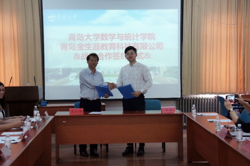 在与会领导和嘉宾的见证下,优秀校友企业青岛金生涯教育科技有限公司总经理郑强与伟德国际1946官方网院长高红伟分别代表双方进行了战略合作协议签约仪式,双方将在伟德国际1946官方网创新创业实践基地建设、创新创业教育及创业项目孵化、互联网+、国家级大创项目开展、全国学生生涯测评模型建立与设计、系统研发及推广等方面进行深度合作。郑强作为2011级杰出校友,曾发起了伟德国际1946官方网第一期创新创业训练营,对于教育工作有着一腔热忱,青岛金生涯教育科技有限公司也是一家科技型教育公司,公司的愿景是为中国2亿学生提供生涯规划。