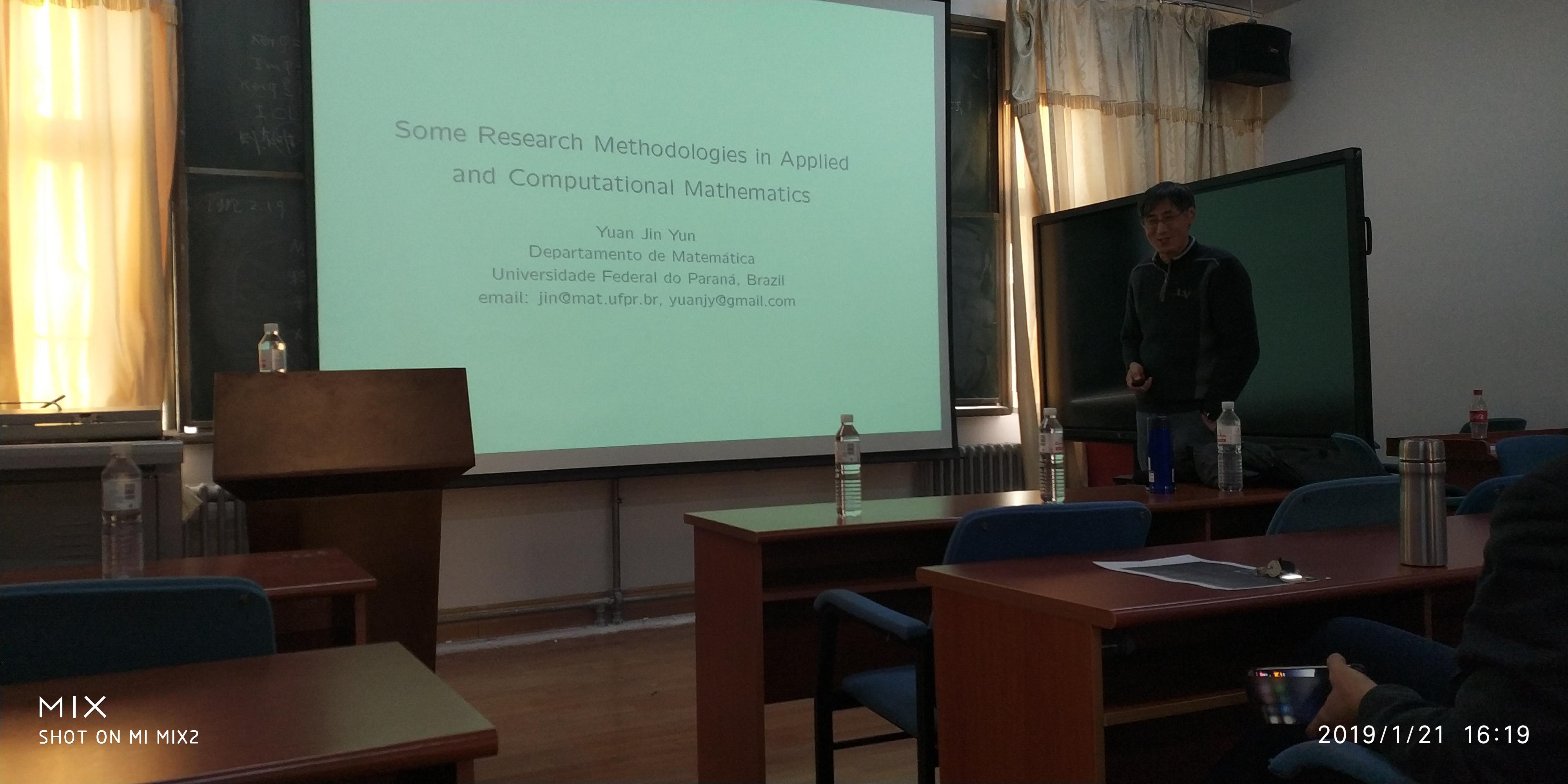 2019年1月21日,巴西科学院院士、巴拉那联邦大学数学系袁锦昀教授应邀来伟德官网做了题为“Some Research Methodologies in Applied and Computational Mathematics” 的学术报告,报告由院长高红伟教授主持。