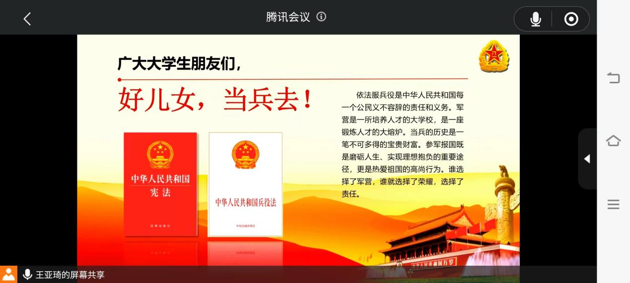 青春因磨砺而精彩,人生因奋斗而升华,为加强征兵政策宣传,进一步做好大学生参军入伍工作,1月9日20:00,伟德官网举办大学生征兵政策线上宣讲会,由院学生会武装部部长王亚琦主讲,学院有意向参军入伍的学生参加本次会议。