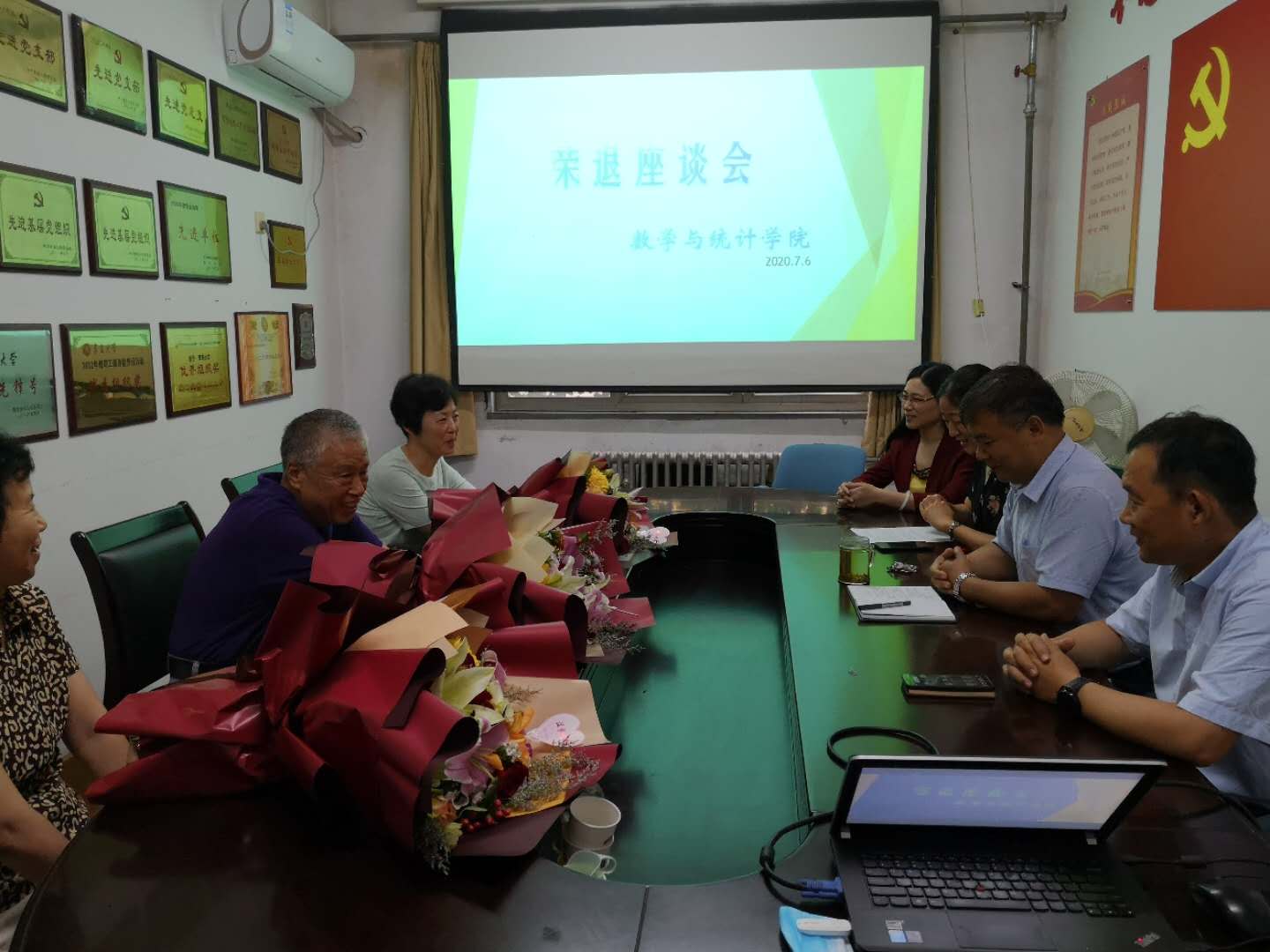 7月6日下午两点,学院为赵凯、蓝荣、庄翠霞三位从教30多年的教师举行荣退座谈会。学院党委副书记张雪蕾主持座谈会。副院长李新民、丁洁玉、教科办主任车红、党政办主任邢欣参加座谈会。学院党委书记姜永杰代表学院讲话。