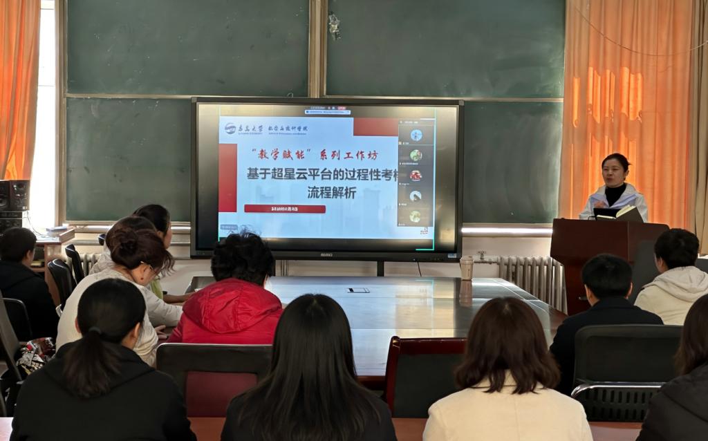 春回励行,玉兰含章。为深入贯彻落实学校关于深化教育教学改革、全面提升人才培养质量的战略部署,3月9日下午,伟德国际1946官方网2026春季“教学赋能”系列工作坊第一期在励行楼302及线上平台同步举行。本期工作坊以“从设计到实操:基于超星云平台的过程性考核全流程解析”为主题,由副院长宋丽娜主持并主讲,特邀超星云平台工程师王启宇担任技术辅讲。活动吸引了全院专业教师线上线下三十余人参与,共同探索过程性考核从理论建构到落地实施的完整路径。