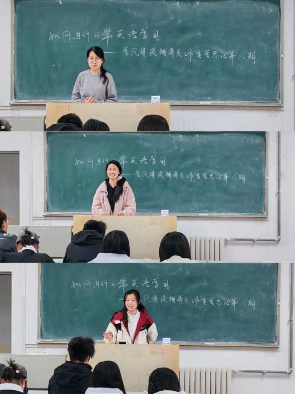 学业引航员刘灿,王煜桐和竞赛引航员王晶针对“如何进行日常英语学习”这一主题进行经验分享。刘灿指出,可以通过收听英语播客等方式来培养英语兴趣,进而找到适合自己的英语学习方法;王煜桐指出在英语四六级考试备考阶段要认真备考,不要存在侥幸心理;王晶提出可以利用重大时间节点作为目标进行英语学习,比如期末考,四六级考试等,并指出可以在寒假期间为下学期的大英赛做准备,以赛促学。